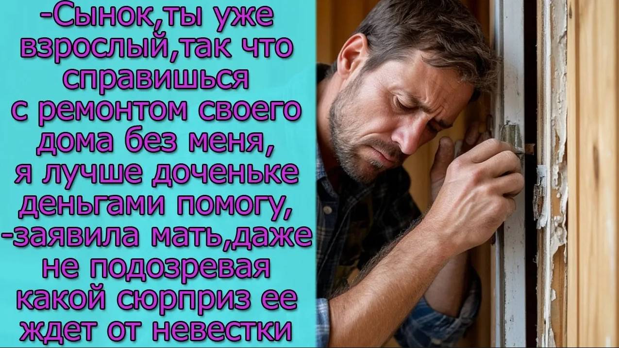 Сынок,ты уже взрослый, так что справишься с ремонтом дома без меня, я лучше доченьке деньгами помогу