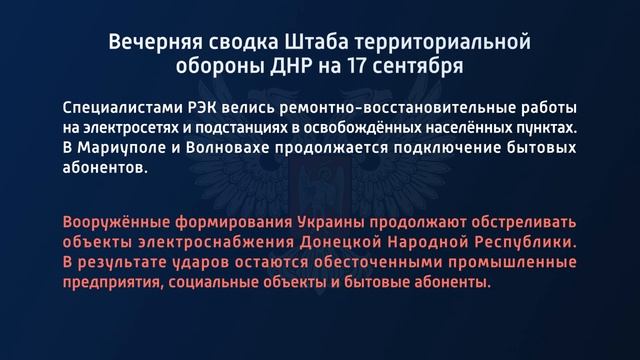 Вечерняя сводка Штаба территориальной обороны ДНР на 17.09.2022