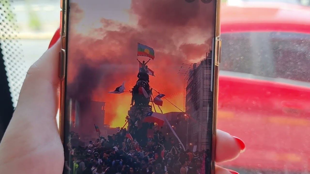 Жители палаток на улицах Сантьяго. Снесенный памятник. Едем в аэропорт / Vamos en aeropuerto