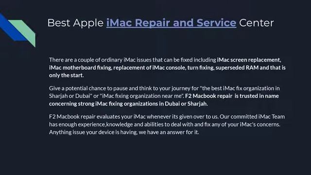 Apple iMac repair service center in Dubai and Sharjah, iMac screen and motherboard replacement, iMac memory upgrade"iMac Repair in Dubai and Sharjah - F2 MacBook RepairiMac Repair in Dubai and Sharjah - F2 MacBook Repair