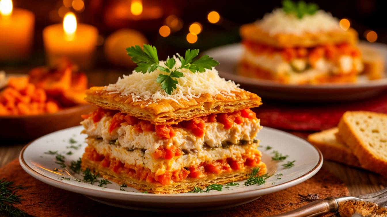 Этот закусочный торт «Наполеон» – предназначен исключительно для праздничного застолья: эффектный, вкусный и необычный. Он немного напоминает салат «Мимоза» из-за схожих составляющих. Те, кто любит блюда из рыбных консерв, по достоинству оценят это аппетитное блюдо. Торт из крекеров прост в приготовлении, но если его украсить красиво, то получится закусочный торт, который можно подавать даже на новогодний стол. Смотрите видео и готовите вместе со мной эту замечательную закуску. Ингредиенты: 1.Консервированная скумбрия – 230 г. 2.Морковь – 200 г. 3.Крекеры – 100 г. 4.Майонез – 70 мл. 5.Укроп – 30 г. Дорогие друзья! Если вам понравился наш контент и вы хотите видеть больше интересных материалов, не забудьте подписаться на наш канал в телеграмме https://vk.cc/cC6iZj ! Ваши лайки и комментарии вдохновляют нас создавать ещё больше качественного контента.