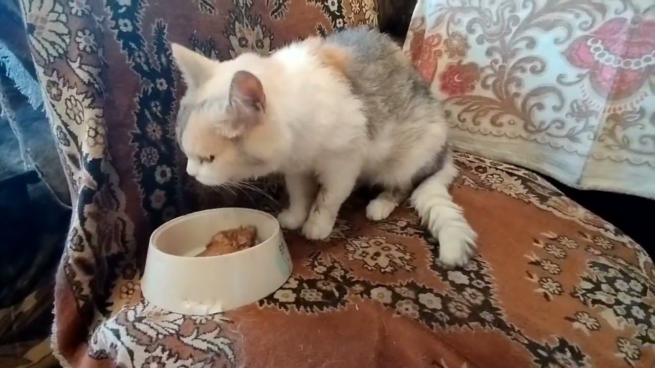 Кошечка ест только мягкий корм
