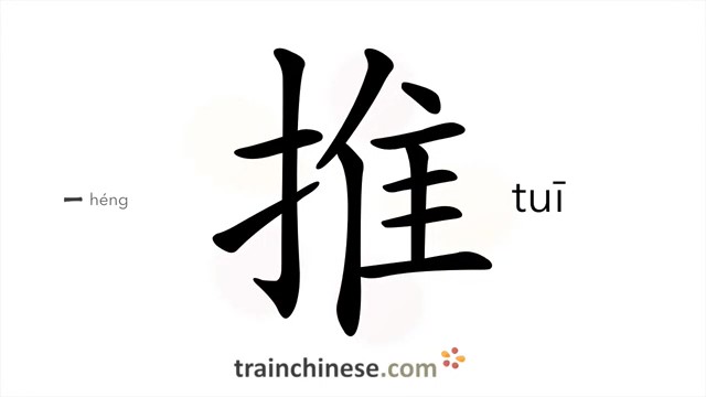 推 (tuī) to push; postpone; promote (fig)