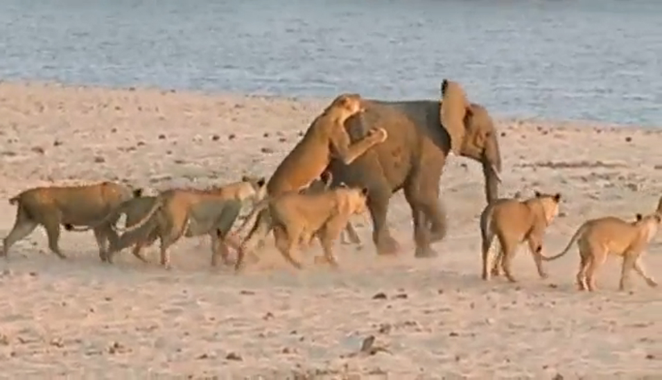 Слонёнок против стаи львов