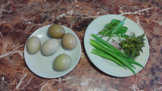 Готовлю фазаньи яйца. Глазунья с зеленью крапивы, одуванчика и лука из фазаньих яиц. Мой завтрак.