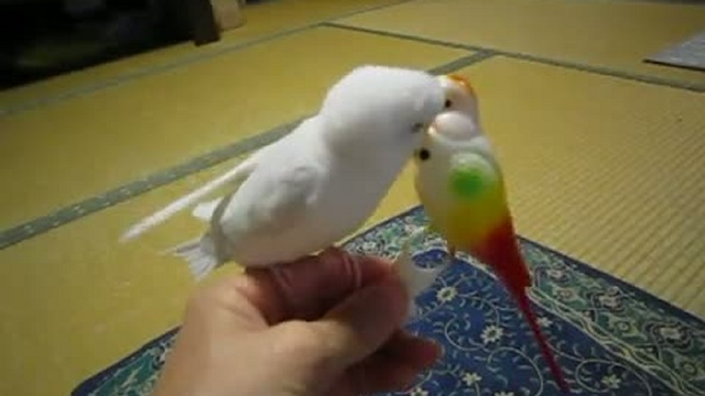 Попугай любит своего игрушечного друга