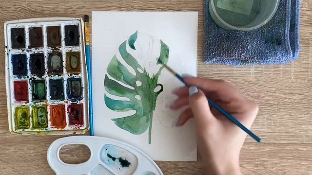Как нарисовать монстеру карандашом и акварелью начинающим | Рисунок для детей