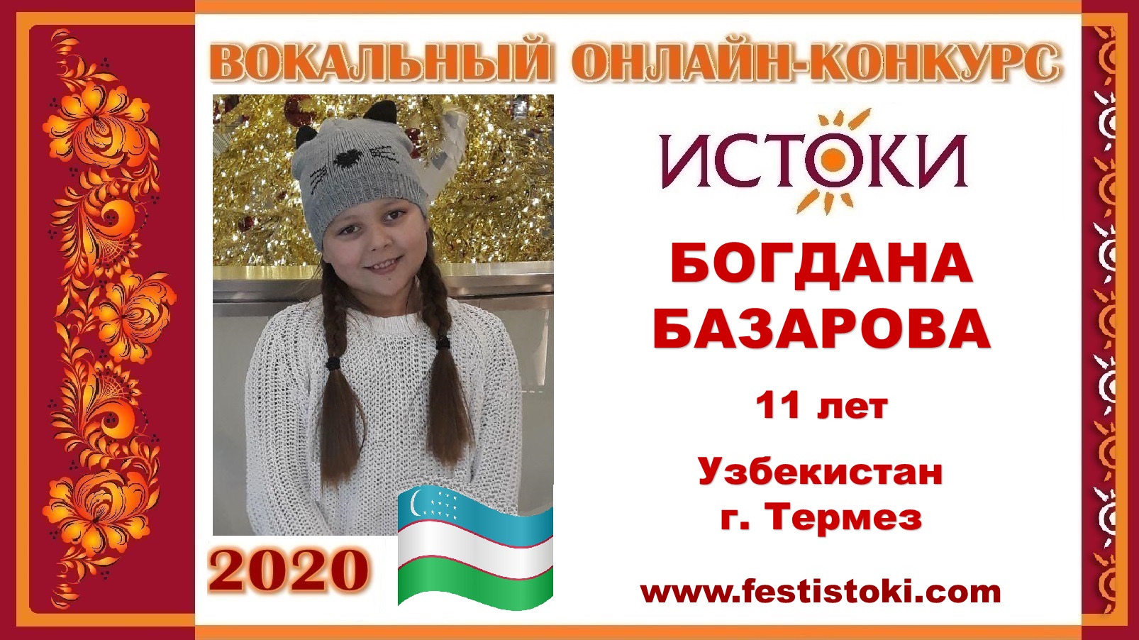Участница Вокального онлайн-конкурса "Истоки"-2020. Песня "Аист на крыше". Авторы: слова Поперечный А., музыка Тухманов Д. Сайт: www.festistoki.ru / www.festistoki.com E-mail: festistoki@mail.ru
