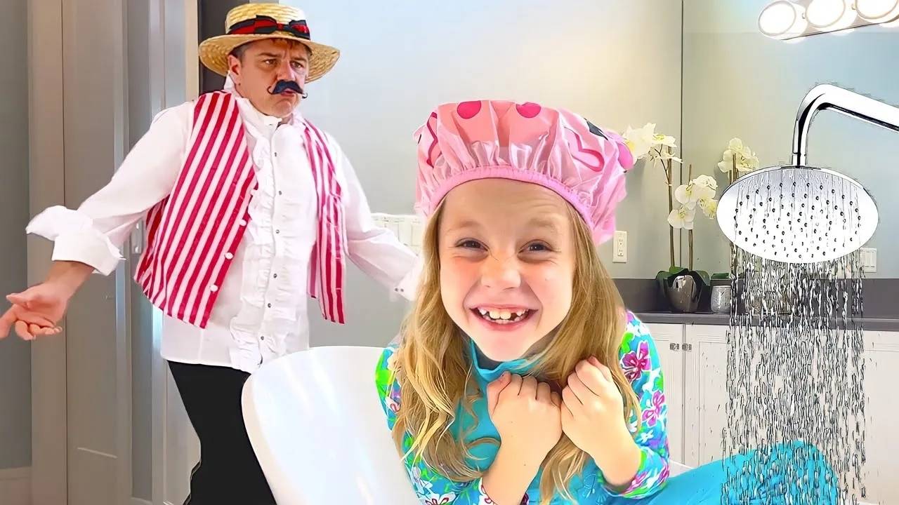 Настя и папа - смешная история для детей про душ из игрушек