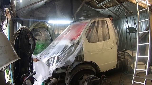 укрываем пленкой газель бизнес перед покраской.