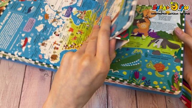 345009 Атлас Путешествие по материкам с окошками и объемными иллюстрациями с 0мес