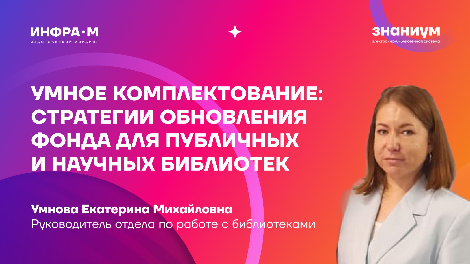 👨🏼💻 Спикер: Умнова Екатерина Михайловна, руководитель отдела по работе с библиотеками 💡 Как найти золотую середину между привычной книгой и электронными ресурсами? На вебинаре мы разберем комплексный подход, который позволит вашей библиотеке оставаться актуальной и для консервативных читателей, и для цифрового поколения. Ключевые точки вебинара: 🔹 глобальный охват: доступ к книгам более 750 издательств в «одном окне» — от гигантов рынка до узкоспециализированных и региональных изданий; 🔹 больше, чем учебники: знакомим с нашими сериями для широкой публики (художественная и научно-популярная литература); 🔹 цифровизация: зачем библиотеке электронный фонд и как он экономит средства; 🔹 практика: пошаговый разбор процедур комплектования без лишней бюрократии. 🎬 Смотрите другие наши вебинары ⇢ https://www.youtube.com/playlist?list=PLi2KS7pzBHJVRV.. 🖥 Библиотека электронной литературы ⇢ https://znanium.com/ 📚 Магазин печатных книг ⇢ https://infra-m.ru/ ✅ Подписывайся на наши соцсети и будь в курсе всех новостей и обновлений: Мы в VK ⇢ https://vk.com/inframgroup YouTube ⇢ https://www.youtube.com/@ebs_znanium Telegram-канал ⇢ https://t.me/infra_znanium Мы в Одноклассниках ⇢ https://ok.ru/profile/586134824940