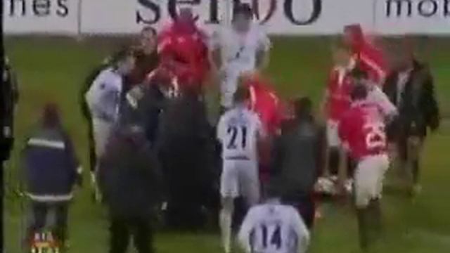 en un juego de futbol, Feher, jugador de uno de los equipos mas grandes de portugal "benfica" se desploma en el suelo, despues de haber sido amonestado, trajicamente murio en el campo de juego