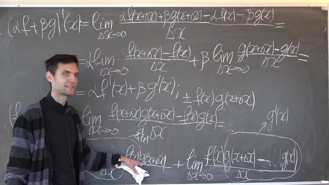 00:00 – Вводное слово 0:26 - Анимация свойство производных 2:50 - Теорема 1 (Дифференцирование и арифметические операции) + доказательство 23:27 - Теорема 2 (Производная сложной функции) + доказательство 37:20 - Теорема 3 (Производная обратной функции) Формулировка 41:46 - Картинка производной обратной функции 50:32 - Доказательство Теоремы 3 54:44 - Ввод в тему - Параметрически заданная функция 1:01:20 - Производные элементарных функций
