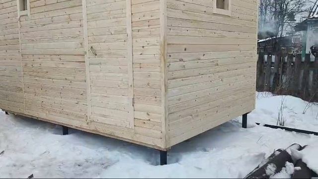 Мобильная перевозная каркасная баня размерами 2,4х4м. Снаружи