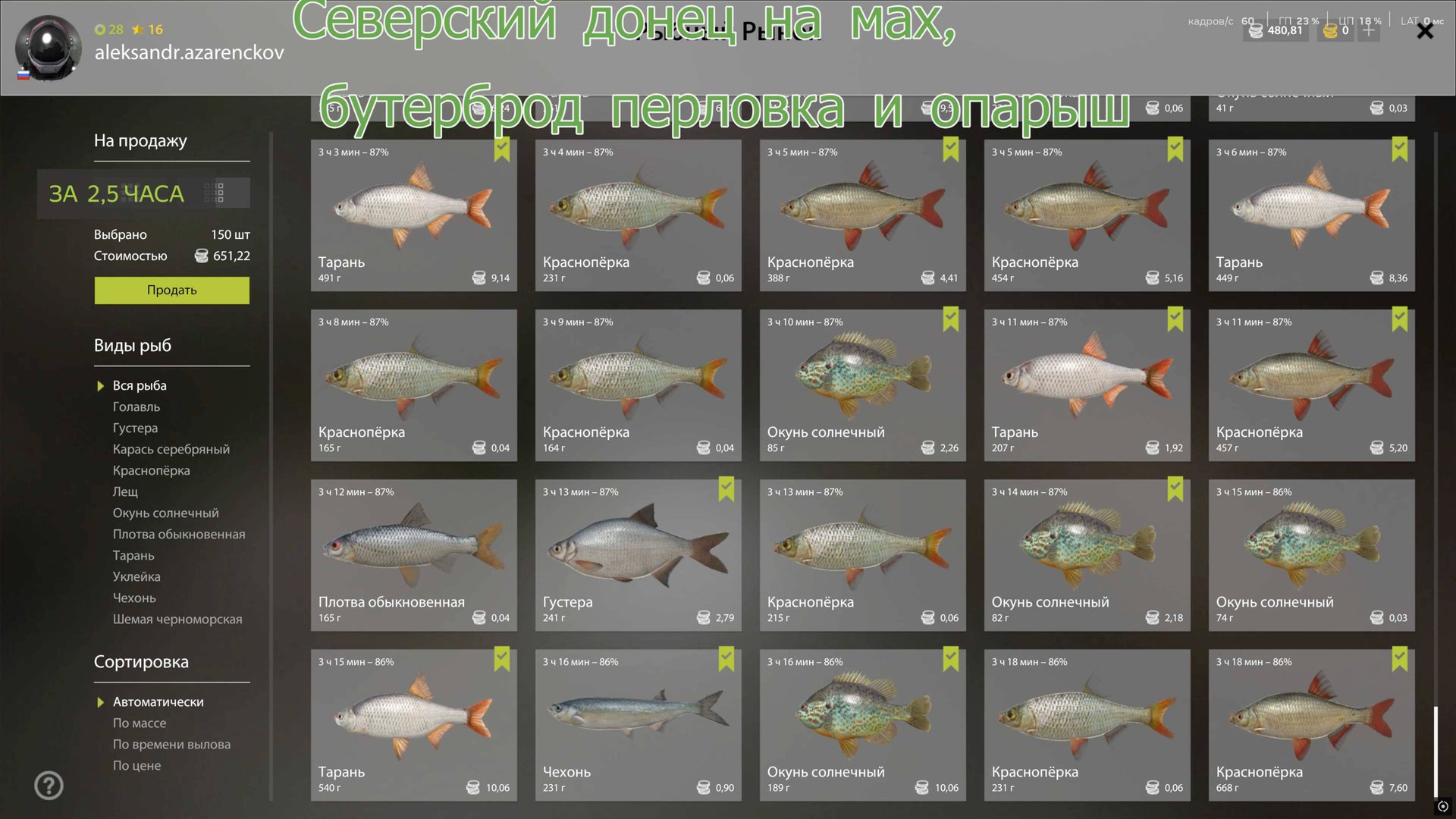 Русская Рыбалка 4 Полный садок рыбы прем!Северский донец..