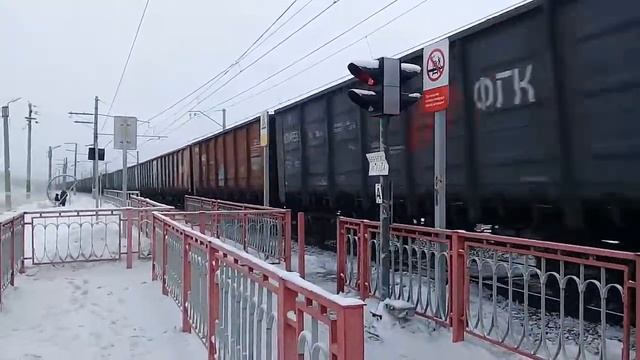Электровоз 2ЭС6-329 с грузовым поездом на О.п. 2347 Км