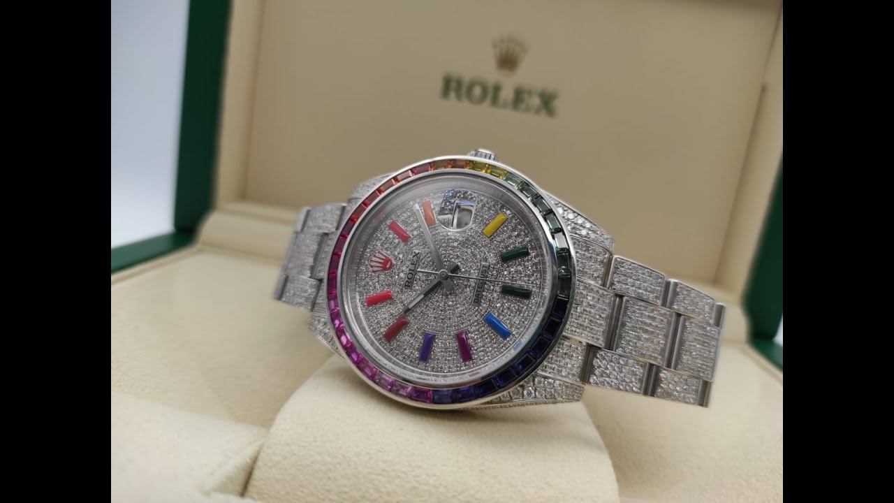 Обзор часов Rolex Datejust II Rainbow Full Pave Tuning 41 mm 126300 CUSTOM