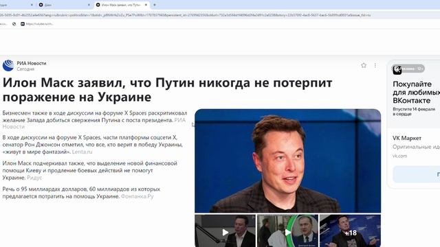 Илон Маск заявил, что Путин никогда не потерпит поражение на Украине