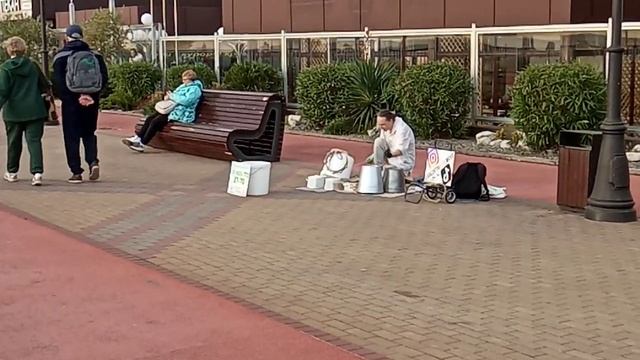 Музыка на ведрах и кастрюлях. В Сочи с гастролями приехал необычный уличный музыкант.