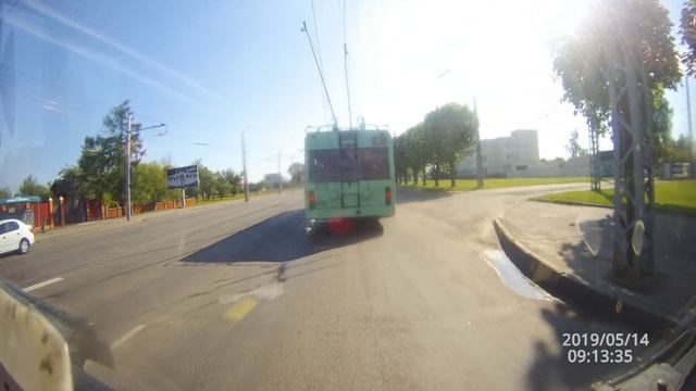 Троллейбус - сход токоприёмника на автоматической стрелке ч.2 - Могилёв