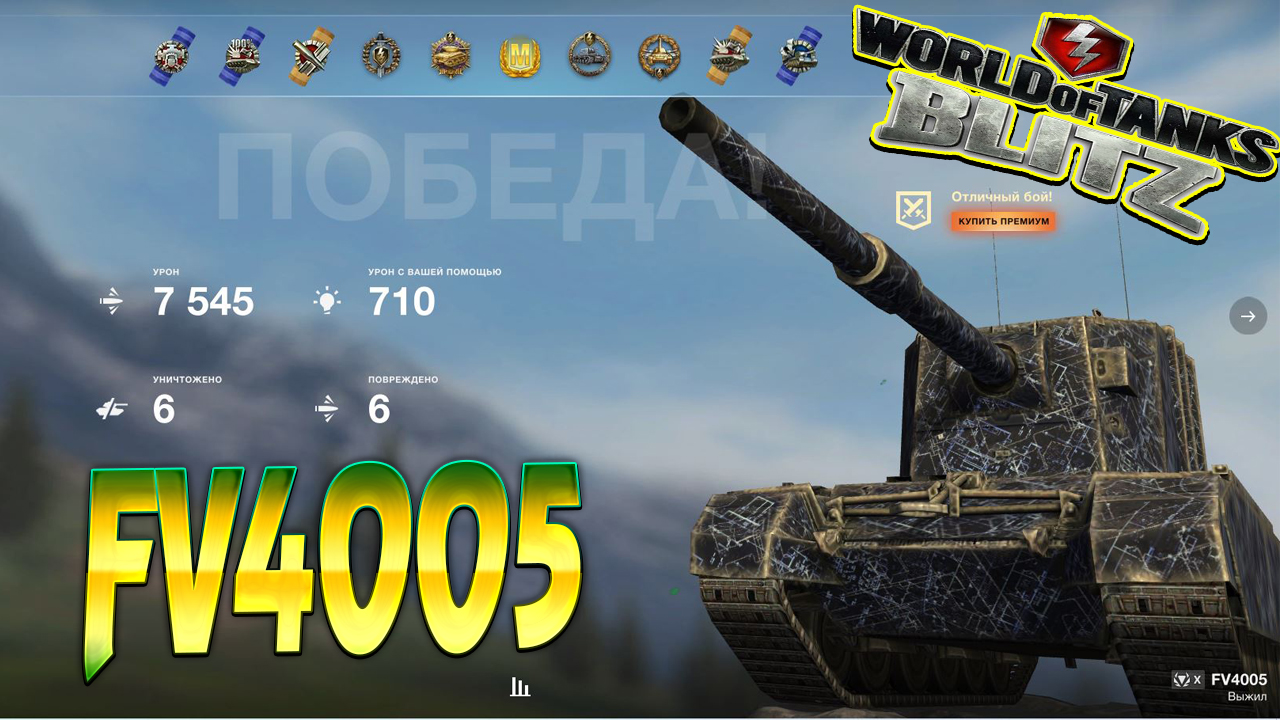 FV4005 Wot Blitz 7.5К Урона 6 Фрагов World of Tanks Blitz Replays vovaorsha.
