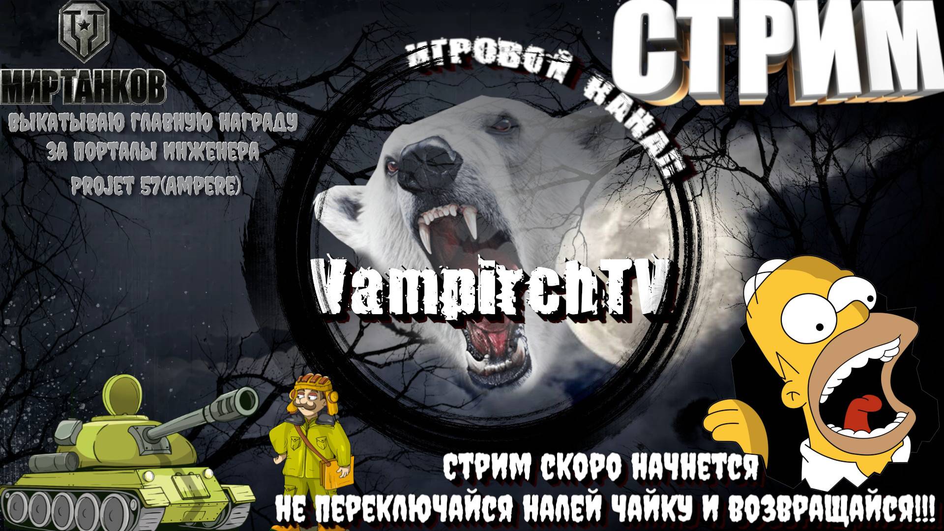 ⭐️Приветствую Вас Танкисты и Танкистки.⭐️ ⭐️Спасибо, что зашли на канал. Поддержи лайком, и подпиской, для тебя это не трудно, а для меня это лучший подарок!!!! 👉 ВАША ПОМОЩЬ В РАЗВИТИИ КАНАЛА✔️ https://www.donationalerts.com/r/vampirchtv 👉 boosty✔️ https://boosty.to/vampirchtvv ✔️Ваффентрагер: Реванш✔️ 👉С 18 СЕНТЯБРЯ 10:00 (МСК) ПО 5 ОКТЯБРЯ 23:59 (МСК) СОЮЗ ТИТАНОВ ✔️Старый конфликт вспыхнул с новой силой. Только теперь держать оборону придётся Гончим. На поле боя выходят усовершенствованный Ваффентрагер и его новый союзник Алаид. Их оружие — разрушительная мощь. Их цель — не победа ради славы, а спасение тех, кто дорог. 👉Расскажите своим друзьям об игре «Мир танков» и играйте вместе!!! https://tanki.su/ru/game/download/ ✔️СТРИМЫ КАЖДЫЙ ДЕНЬ В 20: 00 ПО МСК. Ссылка на скачивание лаунчера EU: 👉VK Play Live✔️ live.vkplay.ru/vampirchtv 👉YouTube✔️ https://www.youtube.com/@vampirchTV 👉Rutube✔️ rutube.ru/channel/27642037 👉Trovo✔️ https://trovo.live/s/VampirchTV Правила чата и комментариев: ✔️Адекватность и уважение. Самое главное - это относиться друг к другу с элементарным уважением и вести себя адекватно в любой ситуации. ✔️Политика и религия. Две крайне острые темы, которые мы не затрагиваем не в серьёзном ключе, не в шуточном канал и всё вокруг него посвящено творчеству и создано ради получения удовольствия и отдыха. ✔️18+. Все мы люди взрослые и потому иной раз можем обсуждать и шутить на разные темы, в том числе не исключён чёрный юмор или пошлятина. Всё это допустимо в рамках нашего чатика, если оно не нарушает первых двух правил. Так же: 👉STEAM⭐️ https://steamcommunity.com/profiles/76561198036037187 👉Vk Группа⭐️ https://vk.com/club4723323 👉Дискорд⭐️ https://discord.com/channels/936291870634573854/965873761100378112