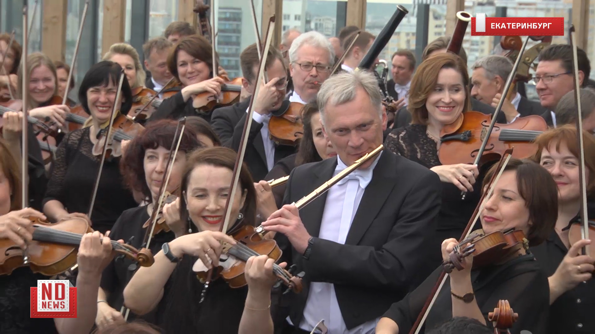 15 июня 2022 года. Сегодня на крыше ЖК «Форум Сити» в центре Екатеринбурга прозвучал «Музыкальный момент» Франца Шуберта в исполнении Уральского филармонического оркестра. Музыканты поднялись на площадку, находящуюся на высоте 55 метров, чтобы анонсировать музыкальный фестиваль «Безумные дни», который состоится в начале июля. Подробнее – https://newdaynews.ru/ekaterinburg/762234.html