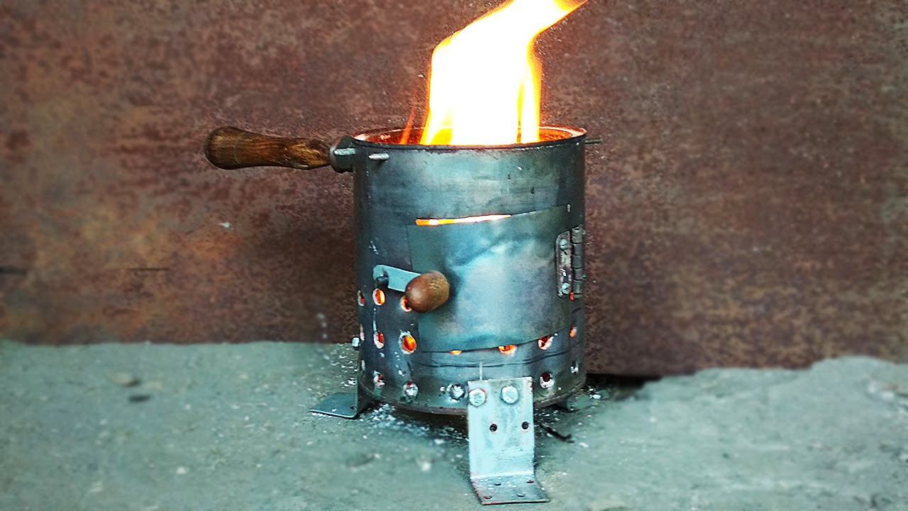 Походная печь из домашнего хлама. Печь имеет 5 преимуществ. 1. На ней можно готовить. 2. Не нужны камни для костра. 3. Она передвижная. 4. Возле неё можно греться, а так же она отпугивает комаров. 5. Бесплатно. Бою на корм:) 4817 7601 2134 7243