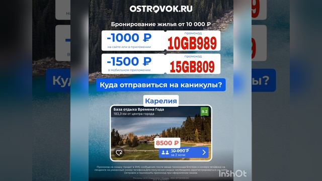 Промокоды на скидку в сервис бронирования жилья OSTROVOK .RU, работают только в мобильном приложении
