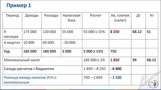Минимальный налог на УСН. Пример расчета I Крысанова А.С.