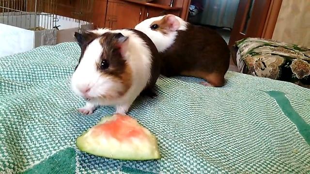 Морская свинка ест арбуз а свин пытается воспользоватся.mp4