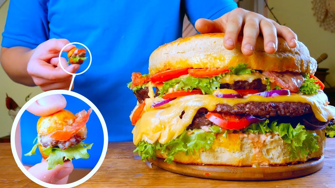 Я СДЕЛАЛ ГИГАНТСКИЙ 8-КИЛОГРАММОВЫЙ БУРГЕР И САМЫЙ МАЛЕНЬКИЙ 3 ГРАММА