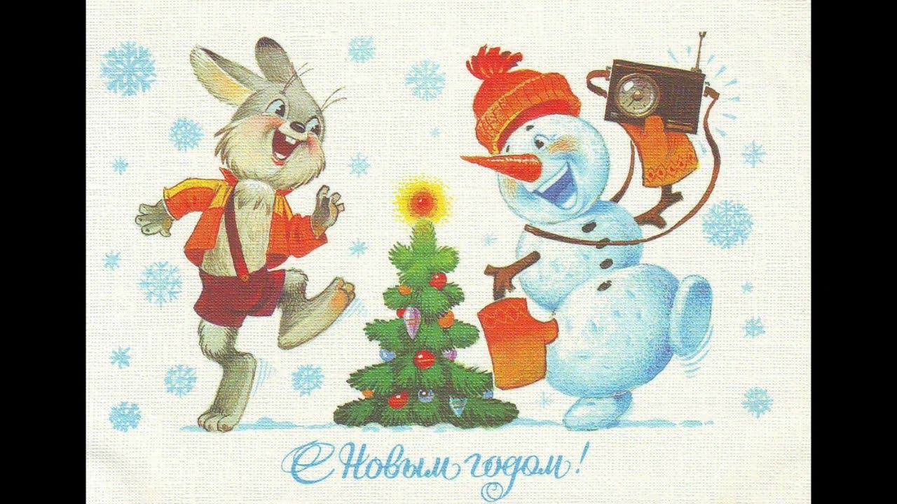 Новогоднее поздравление - видео с советскими открытками к Новому Году "В лесу родилась ёлочка"