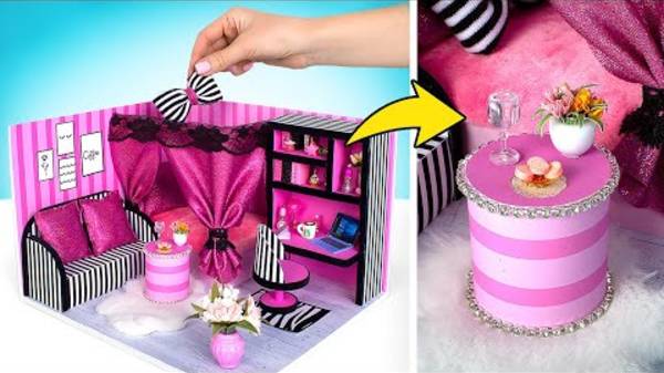 Строим уютную комнату из картона с розовым декором
