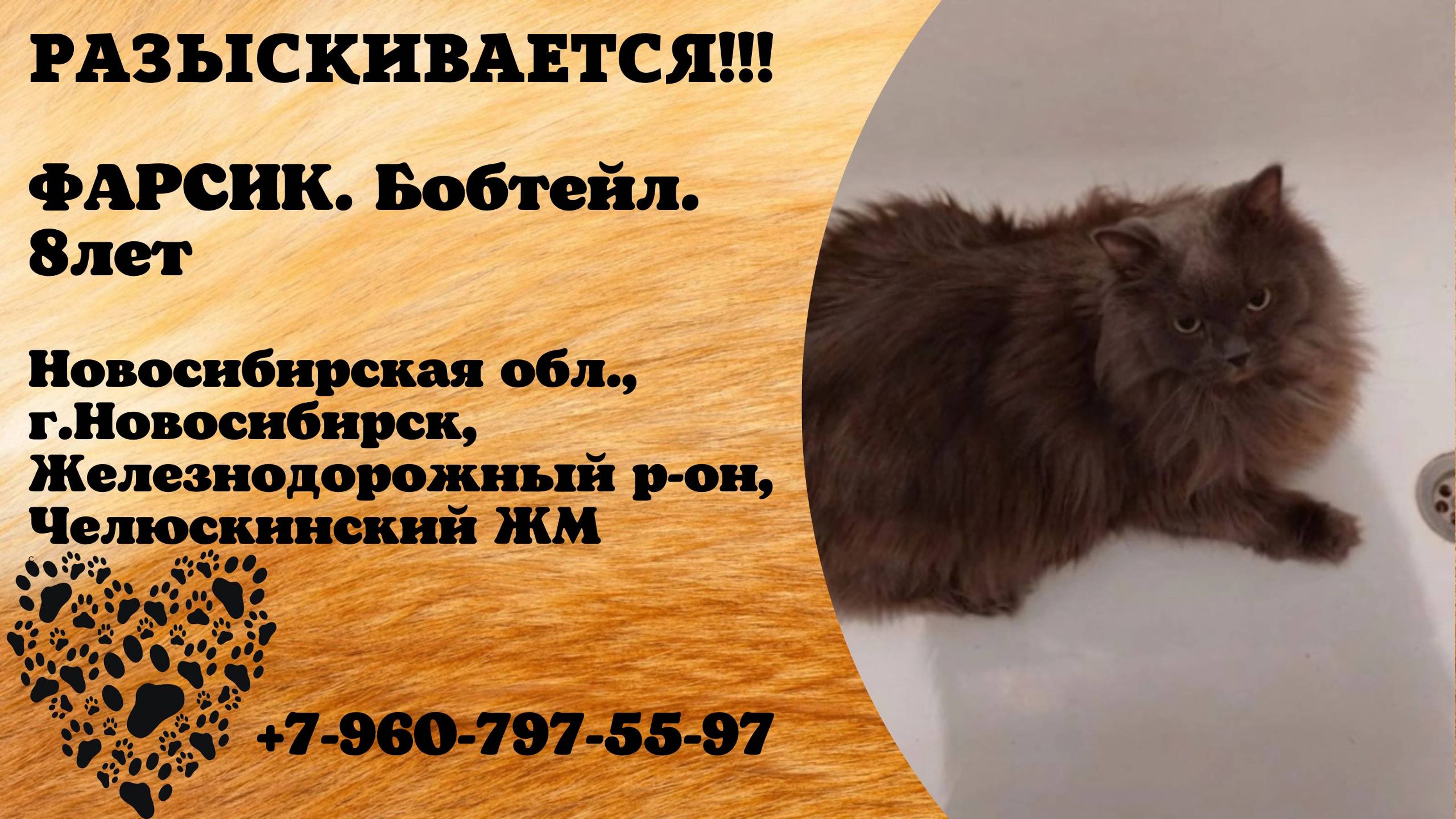 Пропал кот! ФАРСИК. Бобтейл.8 лет. Новосибирская область, г.Новосибирск.