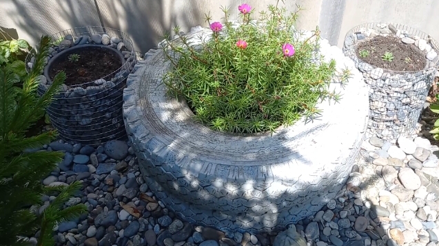 Сделали кашпо из камней.сад огород.что зацвело у нас в саду