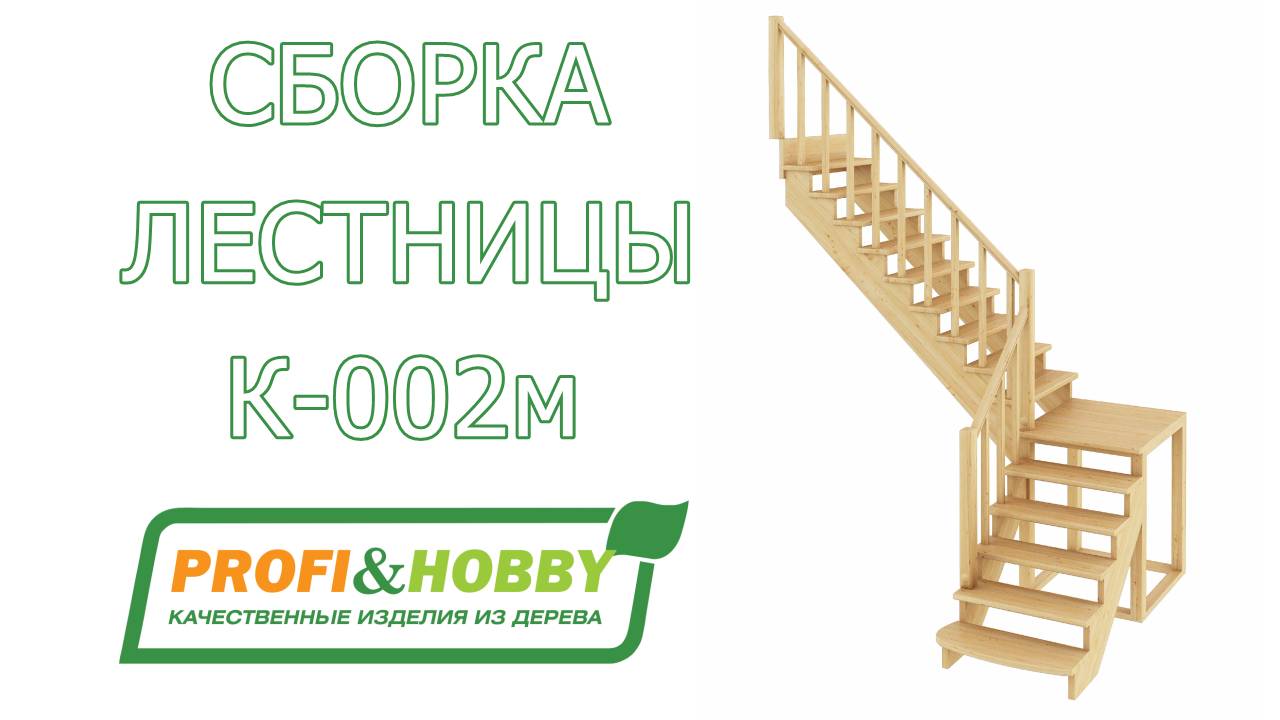 Видео-инструкция по сборке готовой деревянной лестницы Profi&Hobby модель К-002м/1 Л (левая). Лестницы с противоположным заходом собираются в аналогичной последовательности. Функциональная модель сконструирована по классическому принципу марш-площадка-марш, за счет чего отличается повышенной комфортностью и удобством эксплуатации. Традиционный дизайн эстетично впишется в интерьер дома и будет его достойным украшением. Лестница имеет поворот на 90° и выпускается в 4 различных вариантах, что существенно упрощает ее подбор. Для предотвращения скрипа при эксплуатации лестницы не забывайте перед сборкой проклеить все стыки деревянных элементов клеем ПВА или промазать их силиконовым герметиком. Параметры лестницы: Деревянная лестница с прямым маршем и поворотом на 90° Размеры лестницы в плане - 1610х3360 мм Высота - 2925-3120 мм Минимальный проем 2-го этажа должен составлять 3360х920 мм Угол наклона марша - 42° Количество ступеней - 15 шт Толщина ступеней - 40 мм Высота шага ступеней - 195 мм Ширина марша - 900 мм