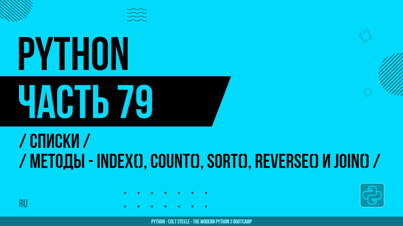 Python - 079 - Списки - Методы - index(), count(), sort(), reverse() и join()