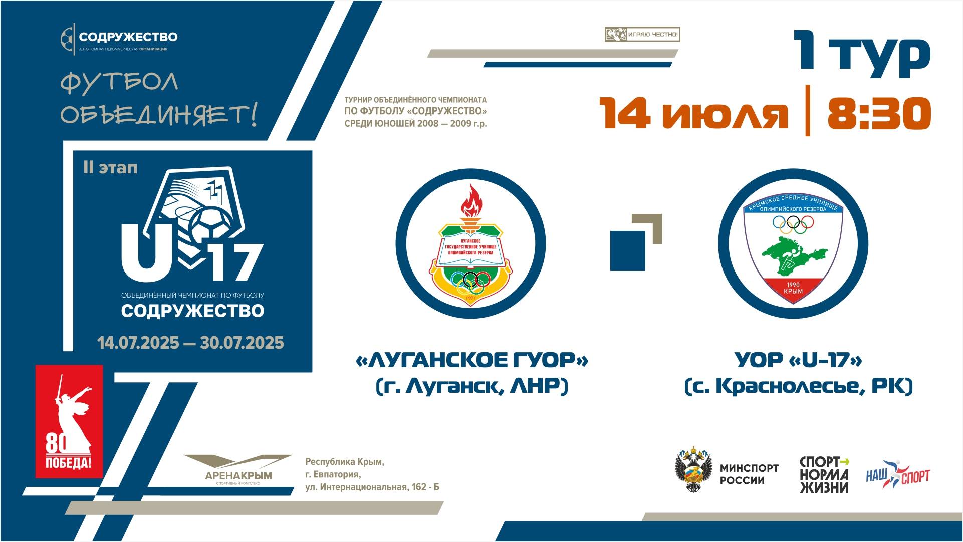 1 ТУР | U-17 | «Луганское ГУОР» (г. Луганск, ЛНР) - УОР «U-17» (с. Краснолесье, РК)