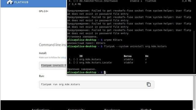 Rosa Fresh: Устанавливаем и удаляем приложение Kstars через Flatpak