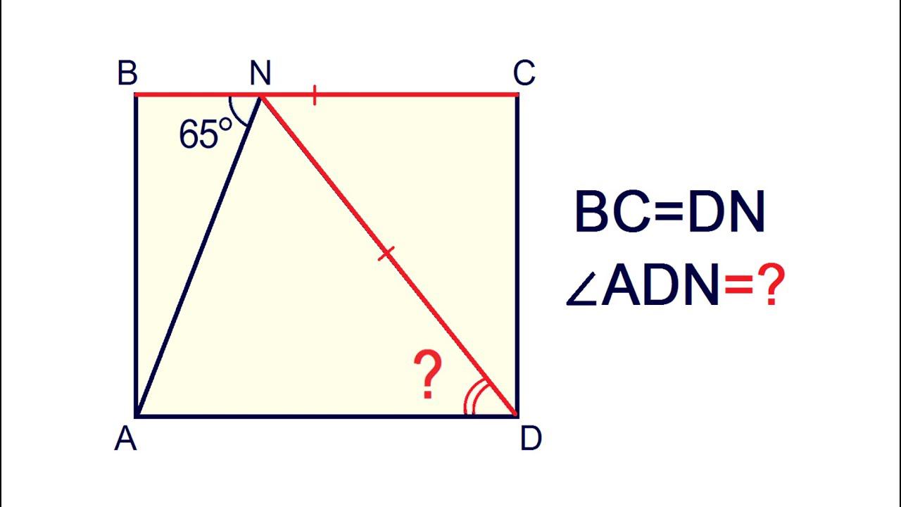 https://t.me/volkov_telegram На стороне BC прямоугольника ABCD отметили точку N так, что угол ANB=65°. Найдите угол ADN, если BC=DN. Valery Volkov https://www.youtube.com/valeryvolkov Наш семейный канал: https://www.youtube.com/@arinablog Почта: uroki64@mail.ru