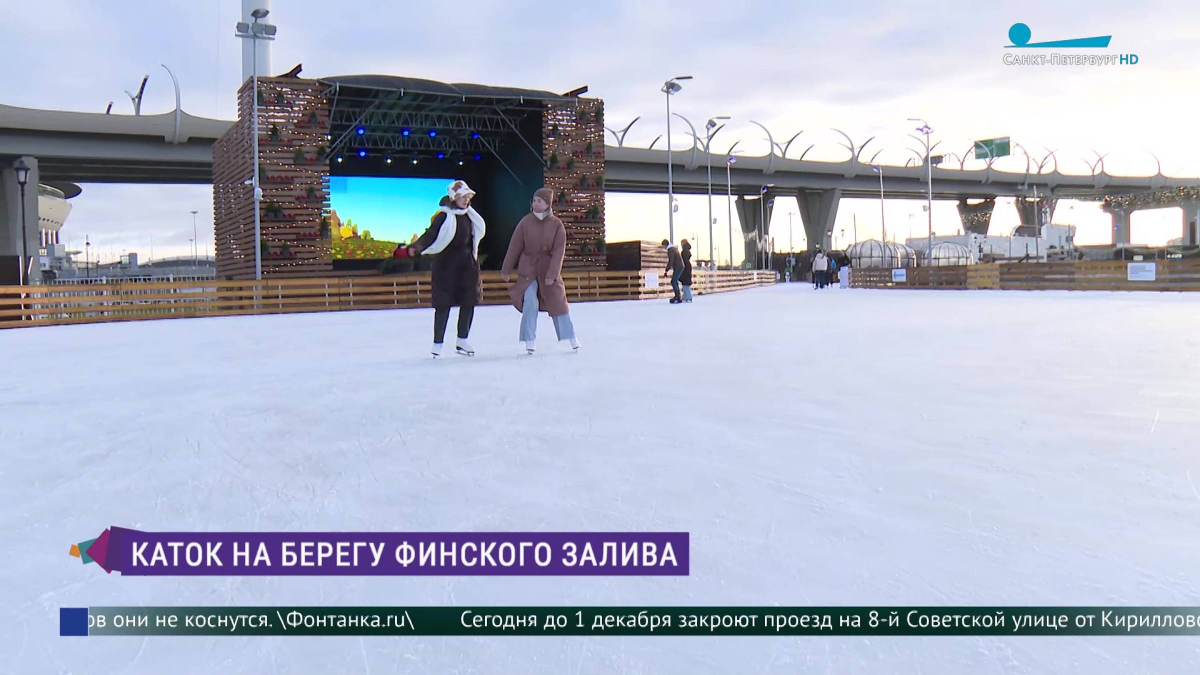 На берегу Финского залива открывается самый большой каток Петербурга, который в этом году планирует побить по площади мировой рекорд. Дмитрий Аксёнчик оценил масштабы.