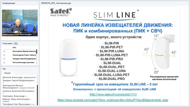 Вебинар “Системы охранных сигнализаций PERFECTA Satel. Автоматика для дома и дачи” Конструкция ПКП PERFECTA позволяет построить традиционную проводную охранную систему с полным функционалом для обеспечения безопасности небольших и средних объектов. К приборам можно подключать модули расширения зон и выходов, добавляя дополнительные устройства. Программа вебинара 1. ПКП PERFECTA Satel ОПС + автоматика дома/дачи 2. ПКП Integra Satel ОПС + Умный коттедж 3. INT-KNX-2 – универсальный модуль интеграции KNX-изделий 4. KNX-модули Satel 5. Проводные ИК/СВЧ SLIM Satel Лектор - руководитель направления охранных систем SATEL Залалутдинов Рашит Зайнутдинович Вебинар состоялся при поддержке ООО "ТД ТИНКО" 11.02.2020 Продукция Satel в Каталоге ТСБ "ТД ТИНКО": https://www.tinko.ru/brands/satel/