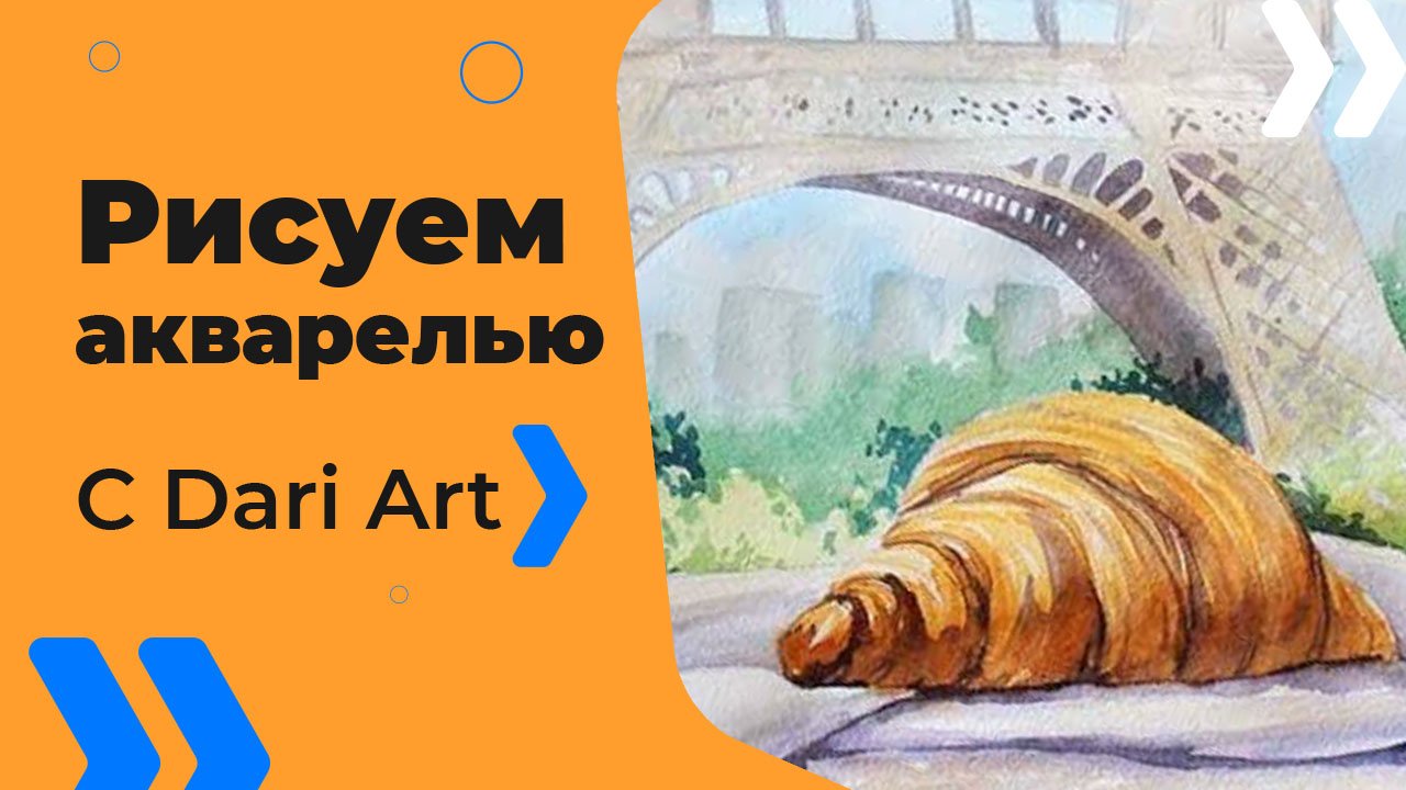 Бесплатный урок рисования! Рисуем акварелью французский круассан! Акварель для начинающих!