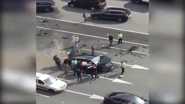 Видео смертельной аварии BMW с номером "АМР" и Mercedes, которая произошла на Кутузовском проспекте в центре Москвы. На кадрах запечатлено лобовое столкновение иномарок.