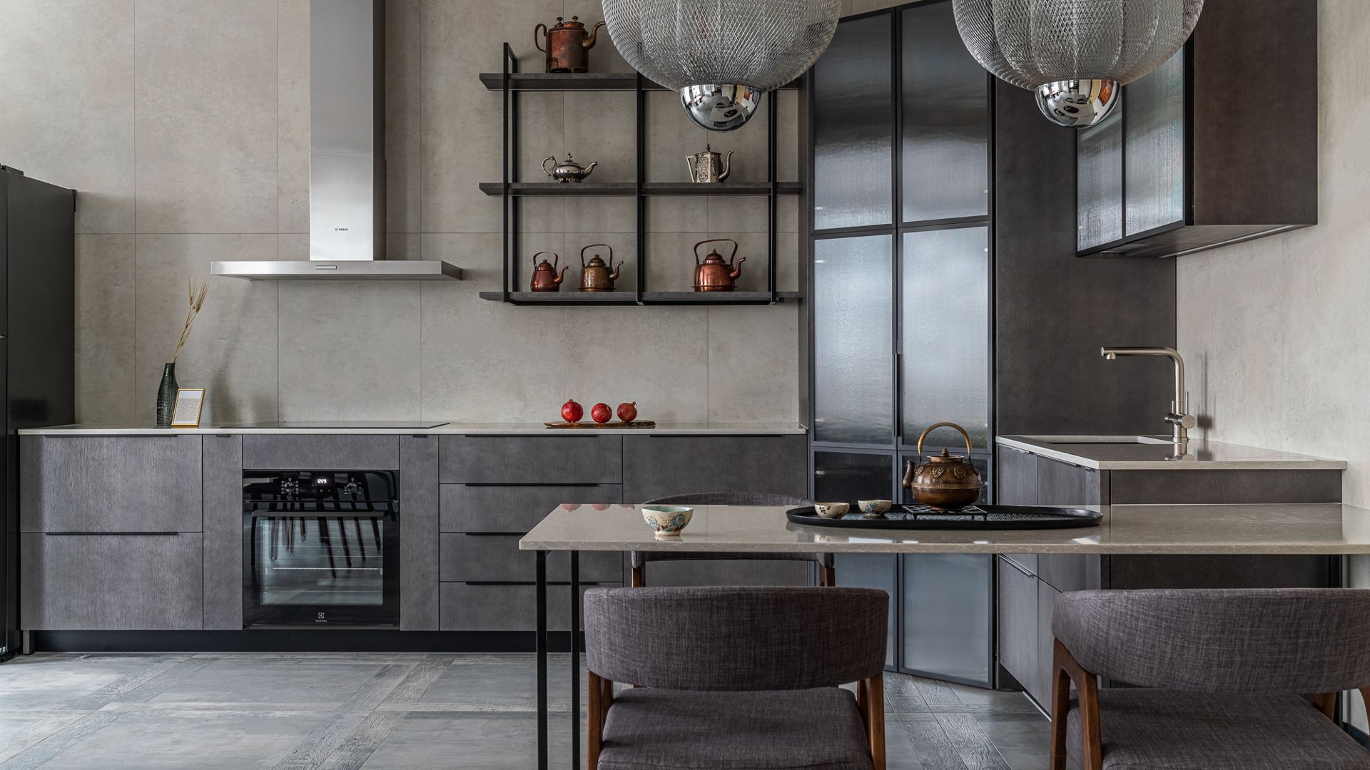 «Москва» это новый жилой комплекс бизнес-класса рядом с площадью Победы, в престижном Московском районе Санкт-Петербурга. Трехкомнатная квартира в смешанном стиле полностью разработана студией дизайна интерьера Марины Мурашевой. Интерьер выполнен с уклоном на 60-е годы, необычное дизайнерское решение. Трехкомнатная квартира в смешанном стиле полностью разработана студией дизайна интерьера Марины Мурашевой. Интерьер выполнен с уклоном на 60-е годы, необычное дизайнерское решение. Кухня: Фасады из шпона дуба, покрыты эмалью по выбранному тону из раскладки NCS . Фасады из алюминиевого профиля имеют декоративное стекло ribbed. Столешница изготовлена из кварцевого агломерата толщиной 20мм. Выдвижные механизмы последнего поколения intivo и петли CLIP top BLUMOTION , Австрийского производителя BLUM. Техника встроенная, за исключением холодильника Side-by-Side. Подсветка под верхними модулями, открытой настенной конструкции и внутри углового шкафа – светодиодная, включается на взмах руки. Гостиная комната: Корпуса комодов из МДФ покрытого шпоном дуба покрыты матовой эмалью по раскладке NCS. Деревянные части из дуба в отделке матовый лак. Выдвижные ящики tandem blum мягкого и бесшумного хода с доводчиками. Пристеная консоль из кварцевого агломерата толщиной 30мм. Складные двери в алюминиевой рамке со стеклом ribbed верхнего подвеса. Зеркала вокруг портала с картиной, увеличивают пространство. Спальная комната: Вместо прикроватных тумб, полки на скрытом крепеже triada. Встроенный шкаф для одежды из экологически чистого МДФ производства M.Kaindl не выделяет формальдегиды. Комод из МДФ шпонированного дубом имеет выдвижные ящики tandem blum мягкого и бесшумного хода с доводчиками. Мебель в душевой и ванной комнате: Тумба под раковиной на тонких ногах в стиле 60-х. Мойка из акрилового камня так же изготовлена на заказ. Перегородка в душ изготовлена из профиля с закаленным стеклом 8мм. Фурнитура для распашной двери Bohle. Тумба под мойкой и шкаф-пенал для стиральной и сушильной машины – из МДФ покрыты эмалью в цвет по раскладке NCS.
