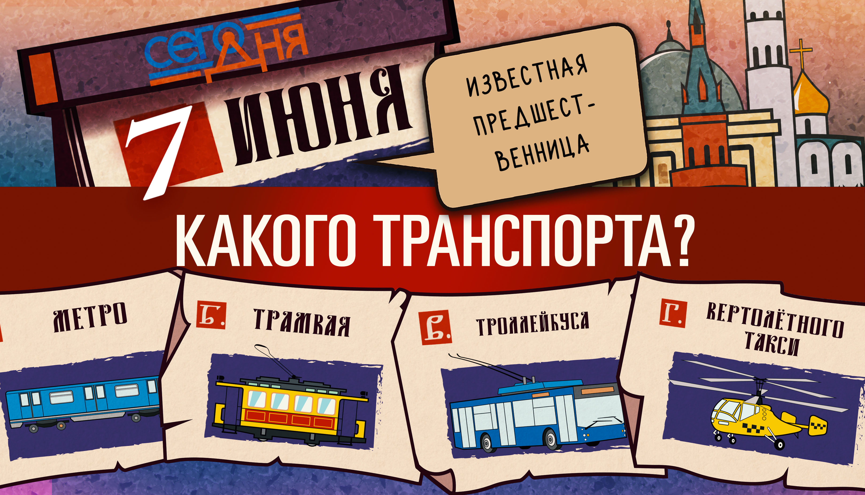 — Сегодня, в день посещения незнакомой кофейни, самое оно – заглянуть туда за чашечкой кофе или какао! — 7 июня 1872 года в Москве было начато строительство предшественницы привычного нам сегодня общественного транспорта. Какого? Отгадай, что случилось «Сего дня»!