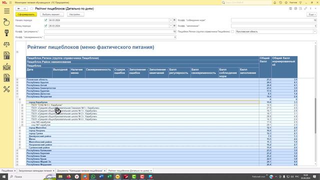 Заполнение фактического меню, примеры несоблюдения бланка. Рейтинг пищеблоков и что на него влияет. Статистический анализ использования блюд в школьном питании РФ (супы, фрукты и их выход, гарниры). Рабочее место специалиста районного управления образования.