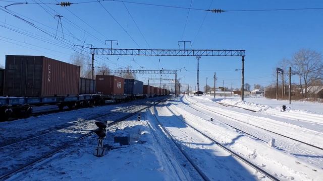 23 февраля 2021 года 13:27 Станция Муром Горьковская железная дорога ВЛ80с-1248+1250 с контейнерным поездом на восток ЧМЭ3т-6908 с маневровым составом ВЛ80с-1431 с грузовым поездом на запад Traffic on snow-covered Murom, trains on all tracks 23 February 2021 13:27 Murom station Gorkovskaya railway VL80s-1248 + 1250 with a container train to the east ChME3t-6908 with shunting train VL80s-1431 with a freight train to the west
